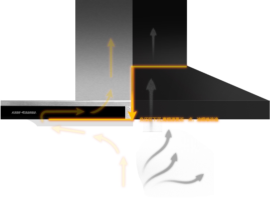 油煙進風從中央變為四周,擴大攏煙面積