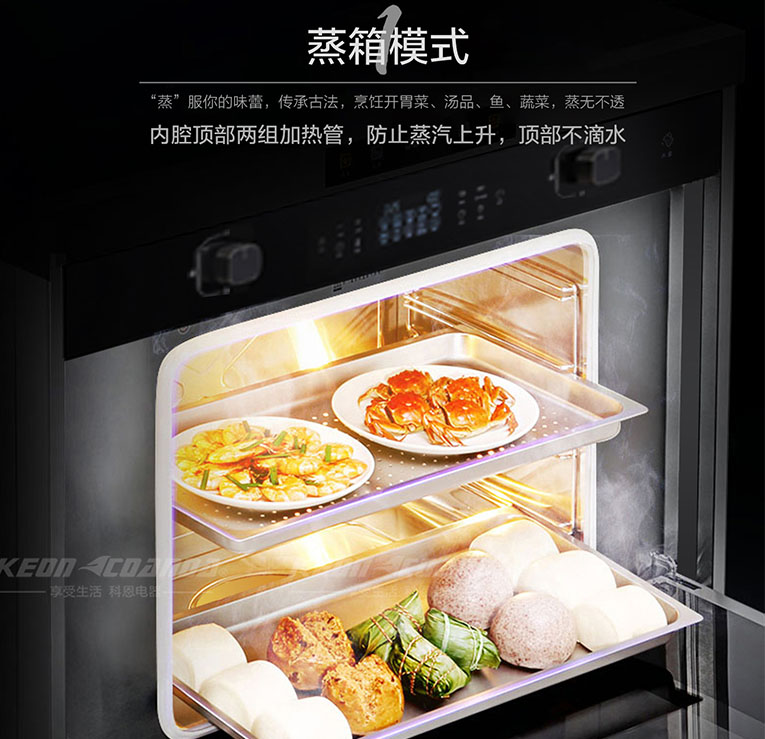 另外,集成灶十大品牌、廚電行業(yè)十大品牌科恩蒸烤消一體集成灶烤箱模式也是非常出色,智能恒溫烤箱200℃高溫多種模式烤,頂部2組熱管4D烘烤,熱量均勻色澤亮麗!