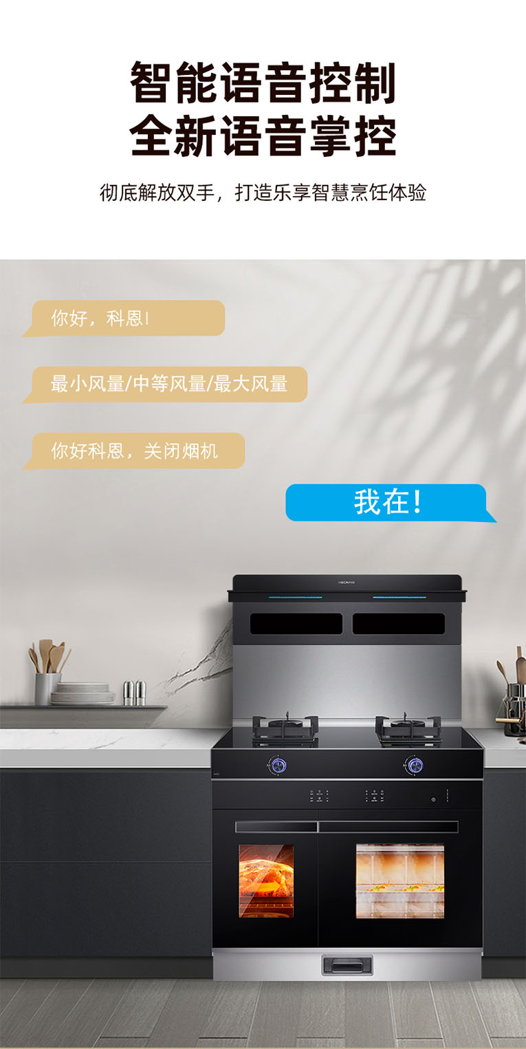 有型有顏,更具實力!十大品牌科恩S450智能語音左右蒸烤集成灶樂享智慧烹飪