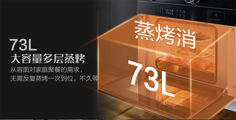 S400智能語音蒸烤消一體集成灶擁有73L大容量多層蒸烤,無需反復蒸烤一次就能到位。十大模式30-200℃廣域控溫,普蒸、強蒸、嫩烤、風烤、燒烤、快烤、解凍、發酵、凈化、除垢模式自由選擇,噴氣式4D立體蒸加底部陶瓷加熱盤,右側雙孔蒸汽噴射,迅速升溫包裹食材,“蒸”服味蕾!