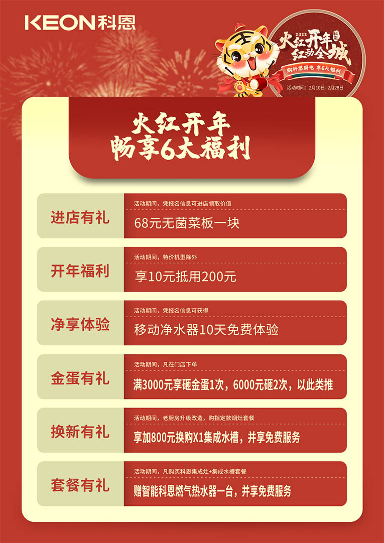 福利拉滿,“虎”力全開!科恩集成灶火紅開年活動火爆開啟!
