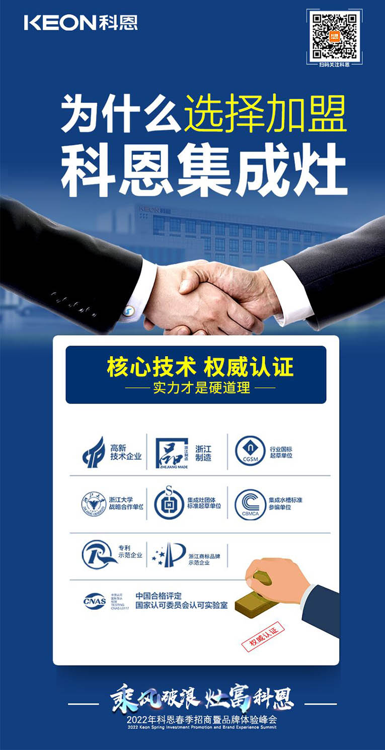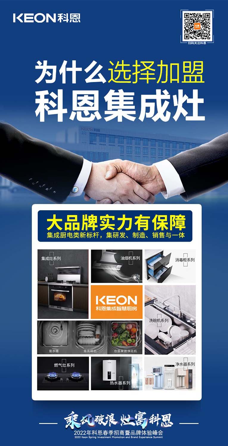 科恩集成灶2022春季招商全面開啟,搶占市場,共贏未來!