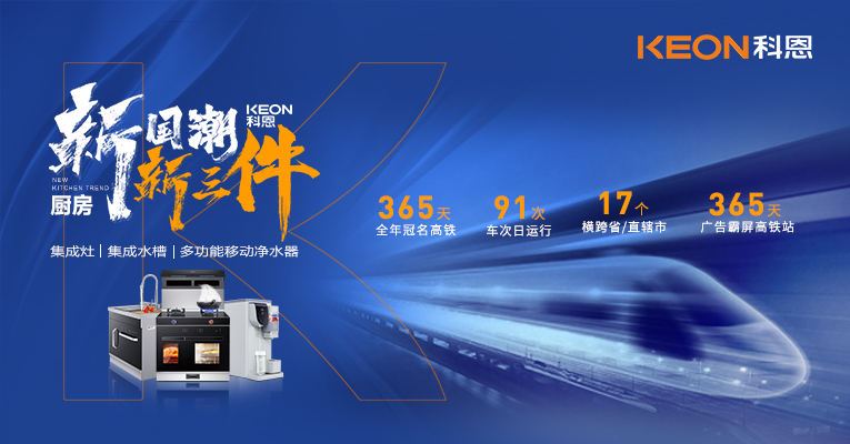 2022年初,集成灶十大品牌、廚電行業十大品牌科恩集成灶創新提出“廚房新國潮,科恩新三件”戰略模式,重塑廚房格局,以烹、洗、飲為中心,集成智慧、延伸廚房、解放雙手、節省空間,打造樂趣、便捷、健康的廚房新生活,科恩品牌之聲通過高鐵傳遍大江南北。