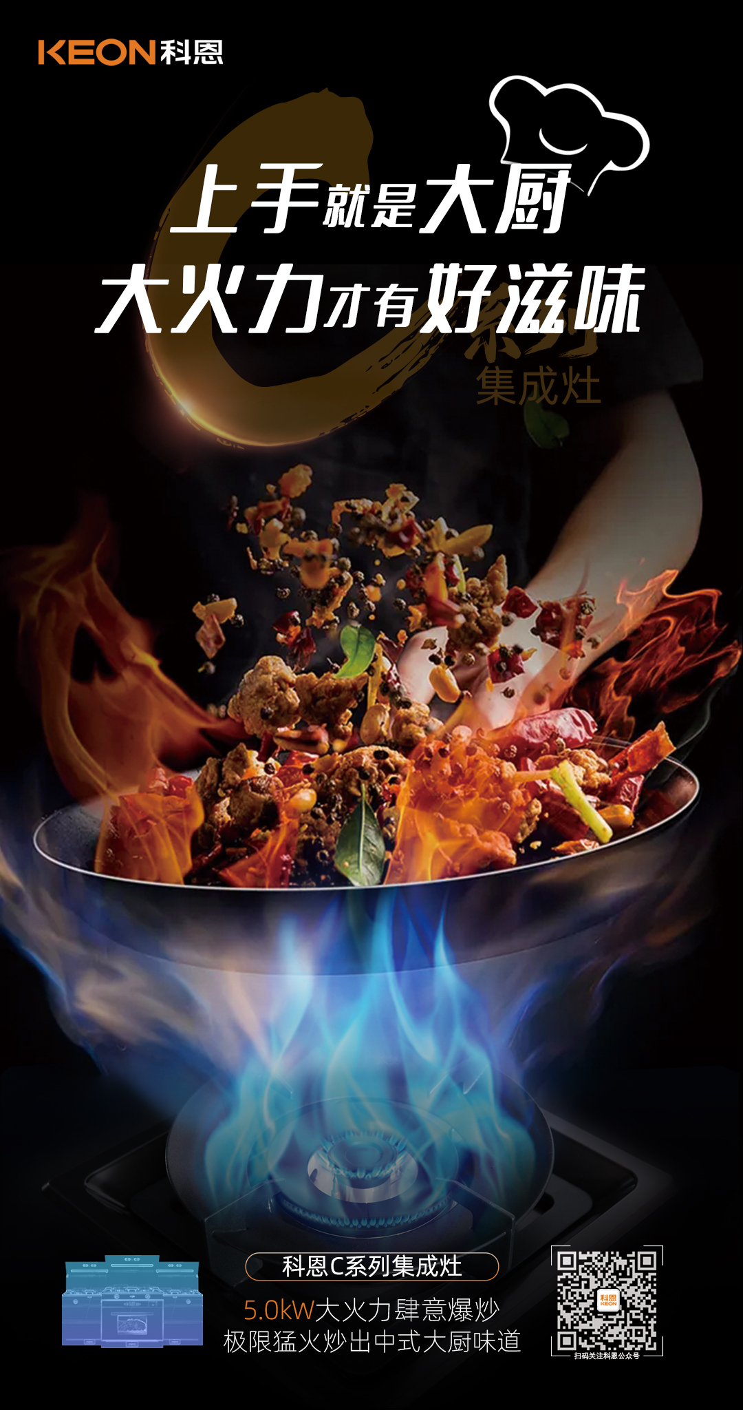 科恩C系列集成灶,5.0kW肆意爆炒,美味紛至沓來!