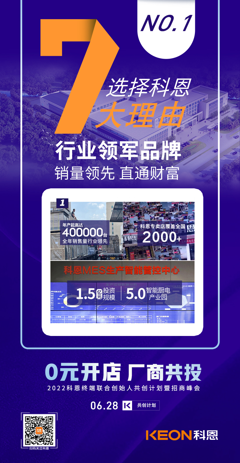 生活從未變輕松,但我們會逐漸強大,現在處于什么位置并不重要,重要的是你將前進的方向,那個了不起的自己,值得被尊重,每個為夢想而努力的人,都值得被歌頌!誠邀您參加2022年6月28日在浙江嵊州,由浙江科恩電器有限公司主辦的「0元開店,廠商共投」2022年科恩終端聯合創始人共創計劃暨招商峰會,并真誠期望我們于此次活動共享藍海市場商業機會的同時,商討雙方企業發展策略,共同揭開科恩集成灶品牌的神秘面紗。
