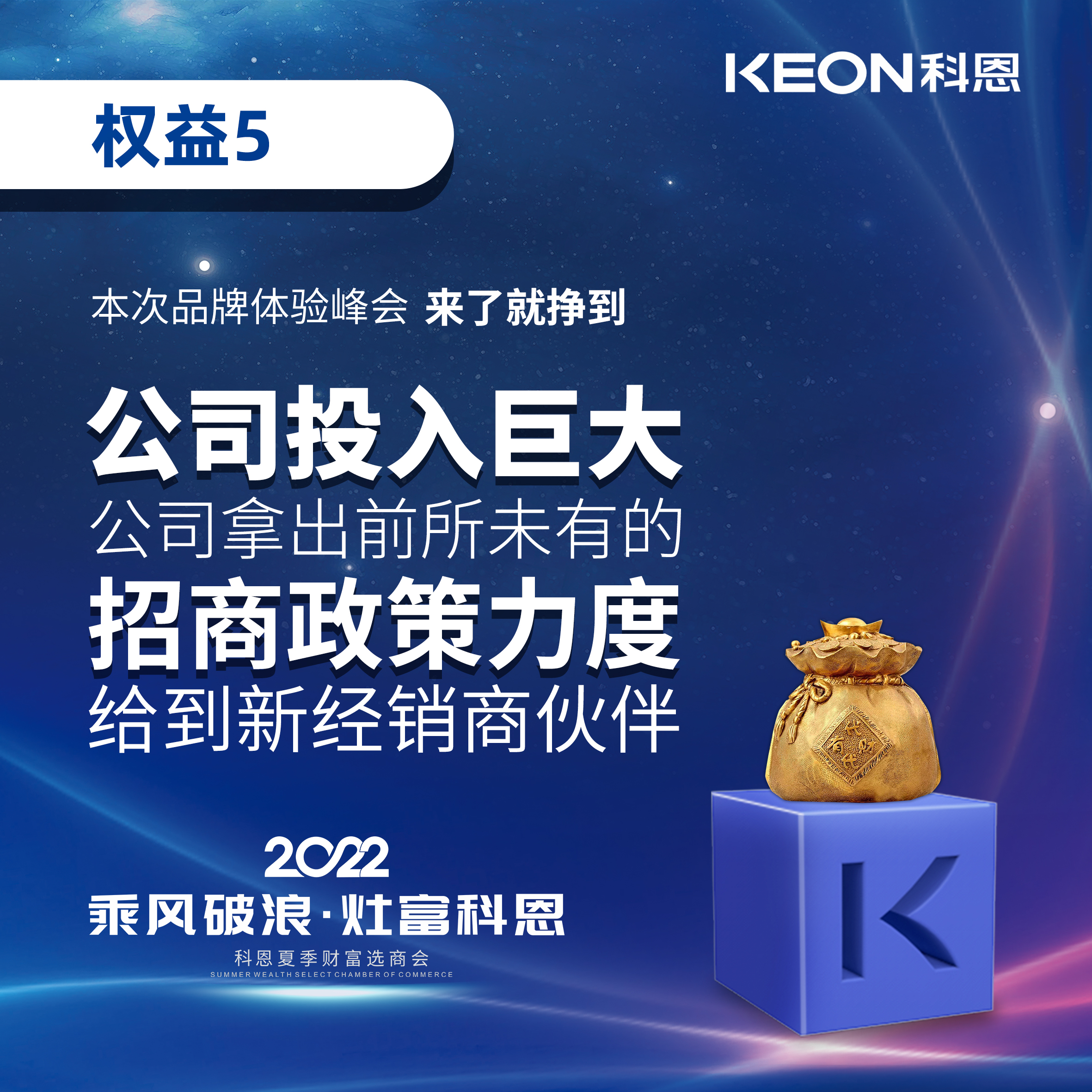 權益四、科恩電器重金打造本次品牌體驗峰會,不僅招商政策優渥,更有多項福利加持: