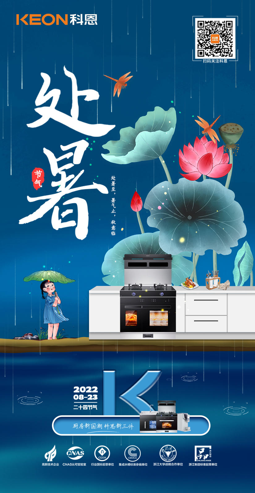 今日處暑,從盛夏到涼秋,科恩集成灶與你一路溫涼相伴!