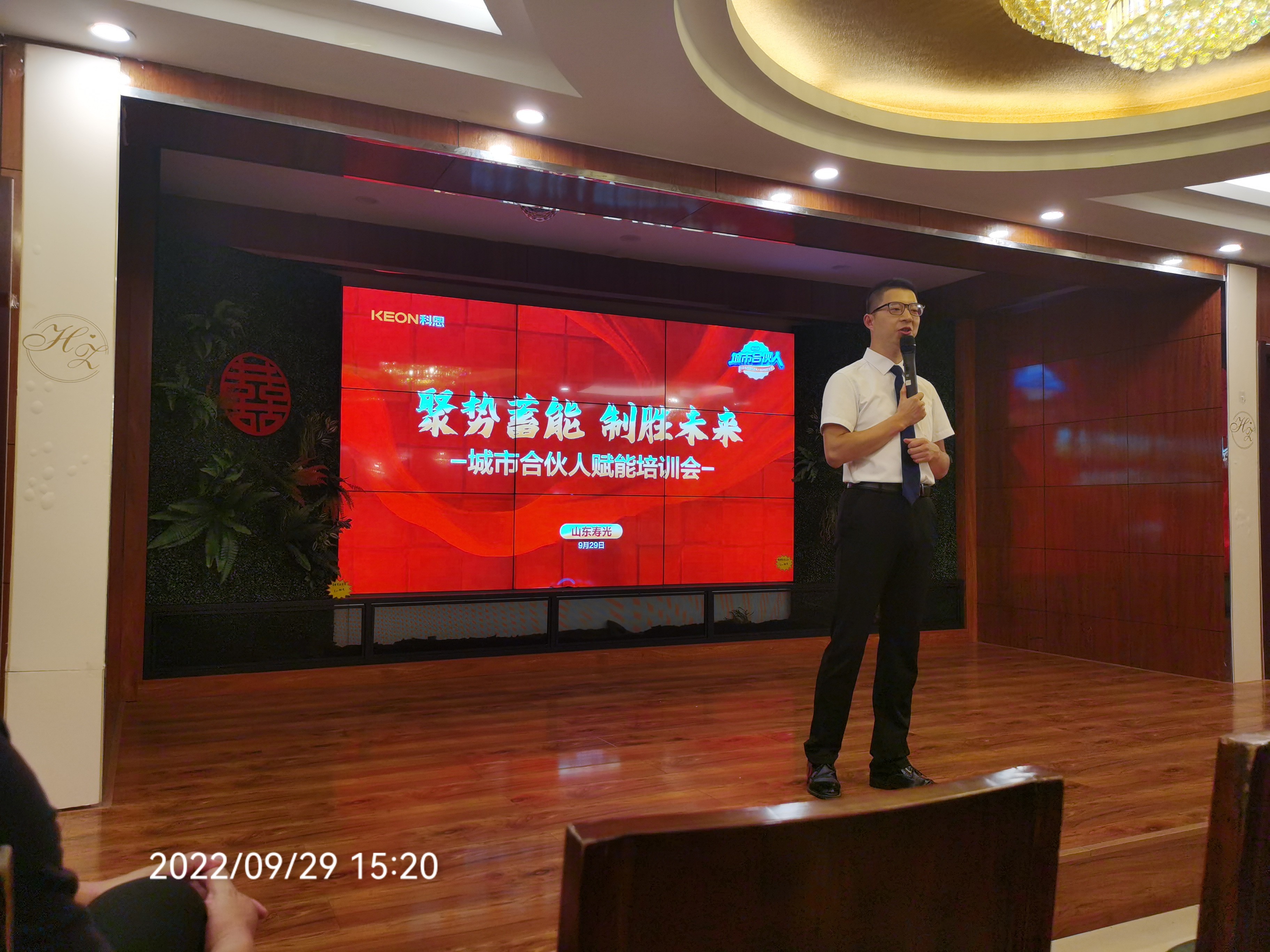 9月29日,科恩電器在山東壽光舉辦的“聚勢(shì)蓄能,致勝未來”城市合伙人培訓(xùn)賦能會(huì)議取得圓滿成功!來自山東各地的百余名豪杰好漢齊集壽光,共同參與此次城市合伙人培訓(xùn)賦能會(huì)議,山東省區(qū)域經(jīng)理王鵬程致歡迎詞!