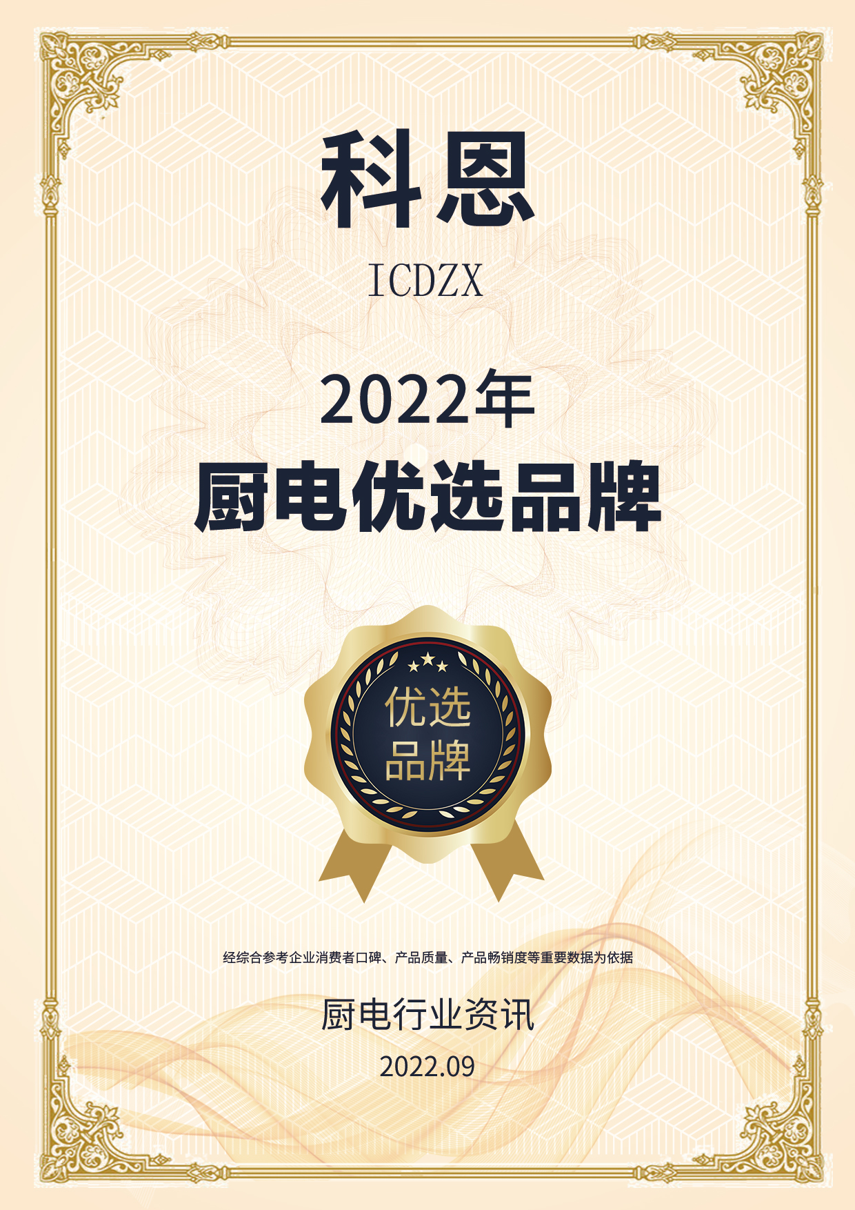 2022年9月作為我國(guó)第45個(gè)質(zhì)量月,廚電行業(yè)資訊(ID:cdhyzx00809)特舉辦了2022年度質(zhì)量月之廚電&集成灶優(yōu)選品牌評(píng)比(全國(guó)網(wǎng)絡(luò)評(píng)選),意在為廣大消費(fèi)者與經(jīng)銷商篩選出口碑好、產(chǎn)品質(zhì)量?jī)?yōu)、售前售后服務(wù)到位的品牌。自評(píng)比活動(dòng)啟動(dòng)以來(lái),經(jīng)過(guò)企業(yè)綜合實(shí)力篩選、資格初審、后臺(tái)評(píng)論、留言推薦、數(shù)據(jù)核對(duì)、綜合評(píng)審等階段,科恩電器憑借強(qiáng)大的品牌實(shí)力、優(yōu)質(zhì)的產(chǎn)品性能、領(lǐng)先出色制造工藝在諸多品牌中脫穎而出,斬獲兩大優(yōu)選品牌雙殊榮!