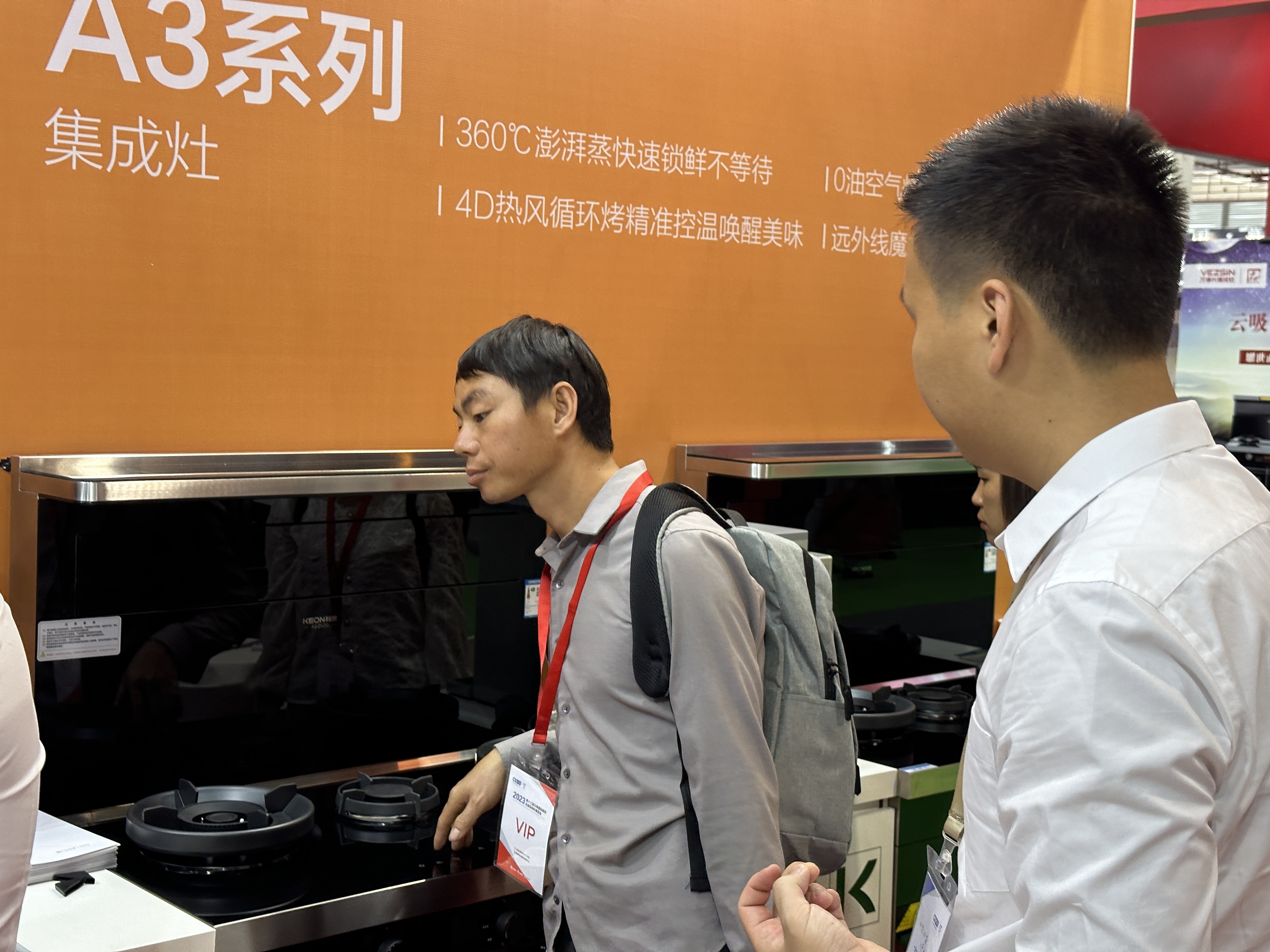 科恩一直致力為普羅大眾大眾智慧、安全、健康的廚房生活。本次展會,科恩以2023年新品為核心力量,向大眾展示了科恩廚電的魅力。一經開展,科恩展館就迎來了參觀熱潮,人們對于科恩產品充滿了好奇,紛紛上前親身體驗。