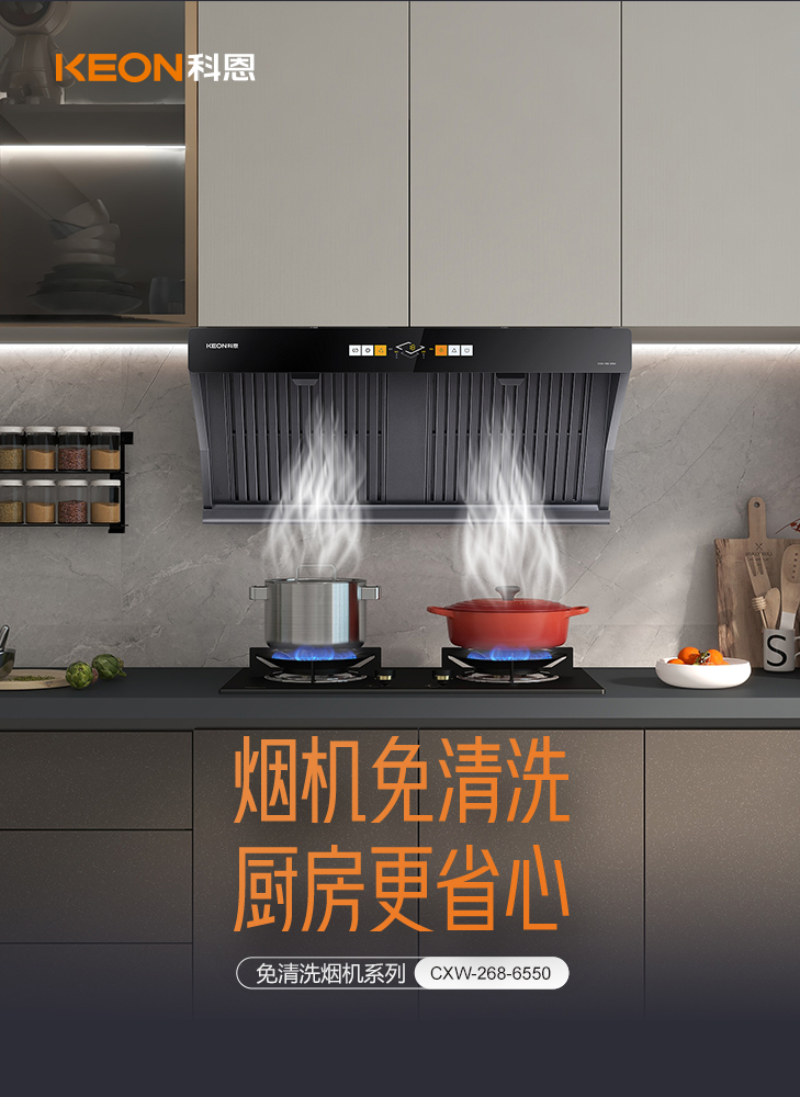 科恩6530免清洗煙機(jī)的面世,給無數(shù)用戶帶去了全新的廚房生活理念。不用清洗的油煙機(jī),讓人們真正體驗(yàn)到了便利的廚房生活。也因此6530可謂是火爆全網(wǎng),暢銷全國!科恩隨即研發(fā)了6530姊妹款6550!