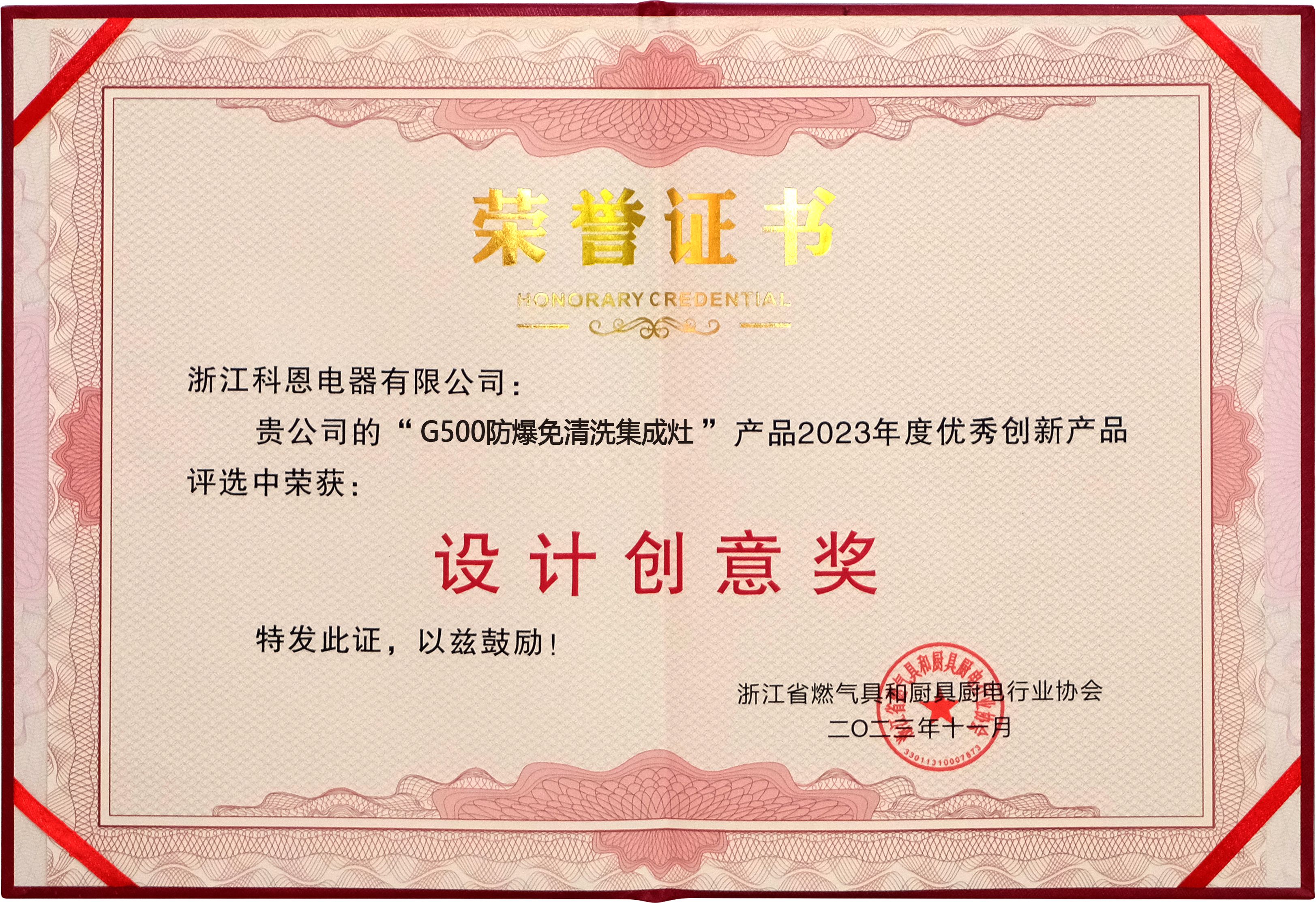 同時,科恩KN700防爆金剛灶、G500防爆免清洗集成灶更是榮獲“設計創意獎”!KN700防爆金剛灶、G500防爆免清洗集成灶均為2023年科恩拳頭產品!