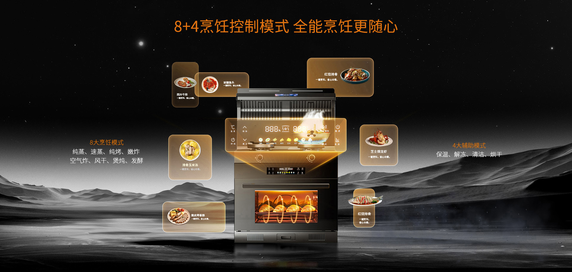 科恩G600防爆免清洗集成灶一鍵開啟全新烹飪模式蒸烤獨立設置30L烤箱+50L蒸箱可一次滿足,兩種需求G600可實現蒸烤炸燉多種烹飪方式