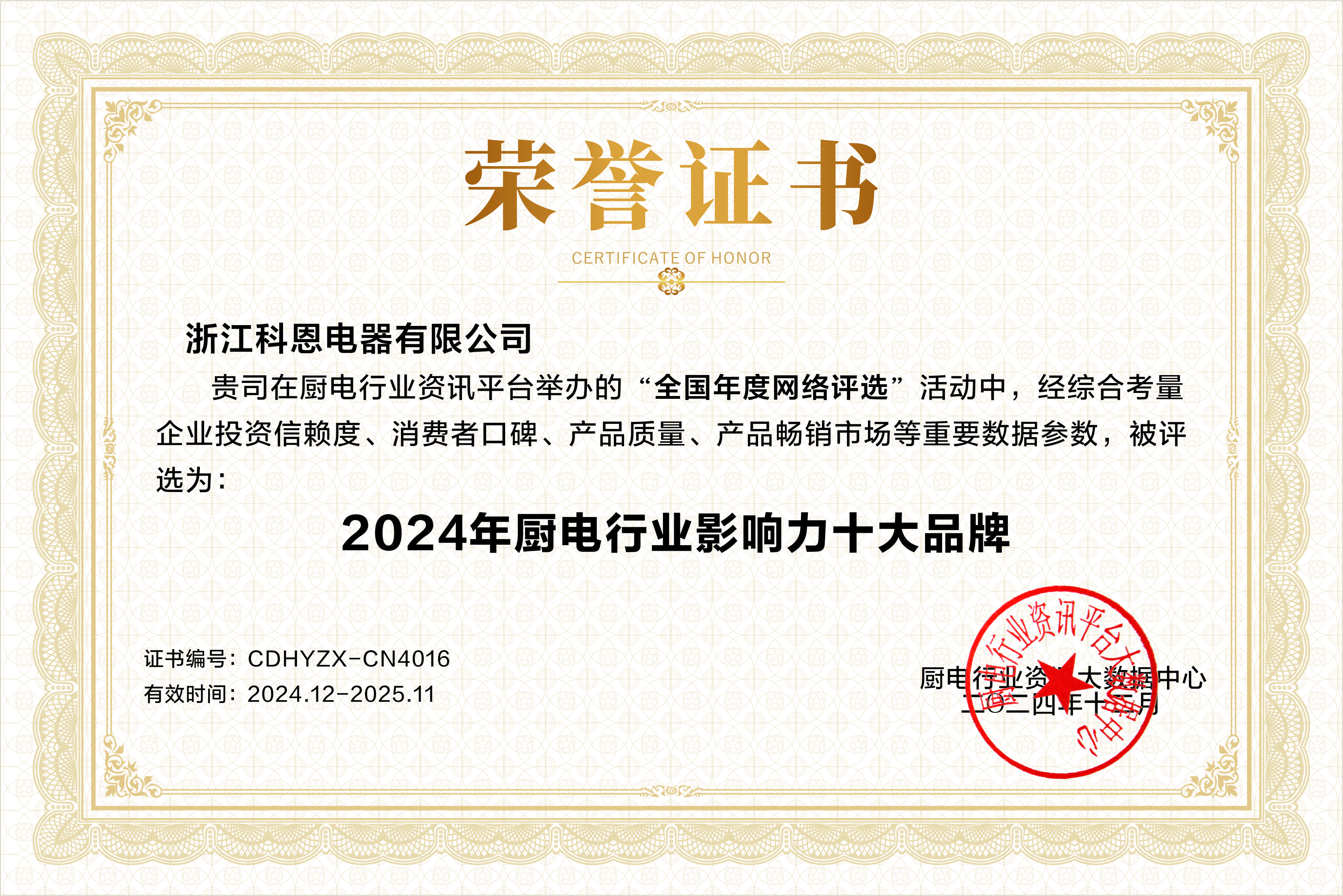 浙江科恩電器有限公司憑借其卓越的綜合實力,在眾多品牌中脫穎而出,一舉斬獲多項殊榮,包括2024年廚電行業(yè)影響力十大品牌、2024年廚電行業(yè)消費者好口碑十大品牌以及2024年廚電/集成灶創(chuàng)新設(shè)計十大品牌,再度成為行業(yè)矚目的焦點。