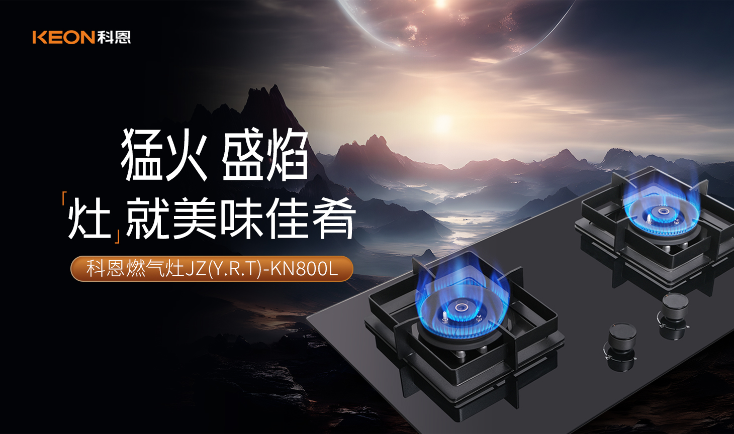 與科恩7720煙機完美搭配的KN800L大板灶,同樣有著諸多亮點。其超大的烹飪空間,讓使用者可以隨心更換各種鍋具,滿足不同菜品的烹飪需求。黑晶鋼化玻璃面板,具備防爆抗氧化的特性,而且易清潔,輕輕擦拭便能光潔如新。航空級鋁合金一體式燃燒器,防油污、防銹且不變形,確保了燃燒器的長久耐用。三噴引射、立體進氣的設計,帶來了5.2kW的大火力,讓爆炒成為一種享受,盡情釋放食材的美味。170°寬域調火功能,讓火力能夠收放自如,精準掌控火候,無論是細膩的小火熬煮高湯,還是猛烈的大火快速收汁,都能輕松實現煙灶聯動功能,火啟煙凈,讓使用者能夠專注于烹飪,無需分心去操作煙機,真正實現了烹飪的便捷與高效。