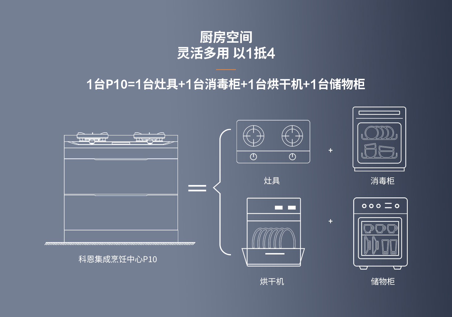 空間革命,小戶救星。告別傳統(tǒng)廚房束縛,解決刻板安裝限制。科恩新品集成烹飪中心p10,0.5個(gè)立方,化繁為簡。空間釋放,不占櫥柜空間;主柜清爽,不積油免清洗,上烹下凈,立體空間全能集成。