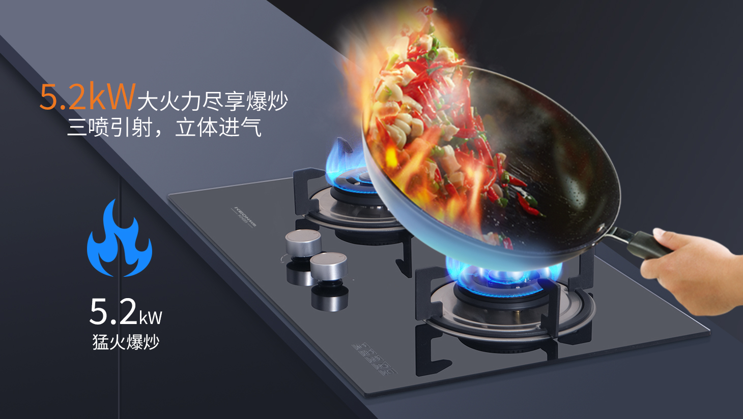 科恩灶具KN89節能首選,一級能效,環保更省氣。無極寬域調火-170°收放自如,從文火到爆炒盡顯烹飪樂趣。童鎖+熄火保護,智能守護廚房安全。舊廚煥新不是斷舍離而是讓舊時光與新技術握手言和,科恩KN89灶具用工藝革新守護老廚房的溫度記憶。一臺KN89=免改孔+新科技+焦慮,開啟無損煥新時代