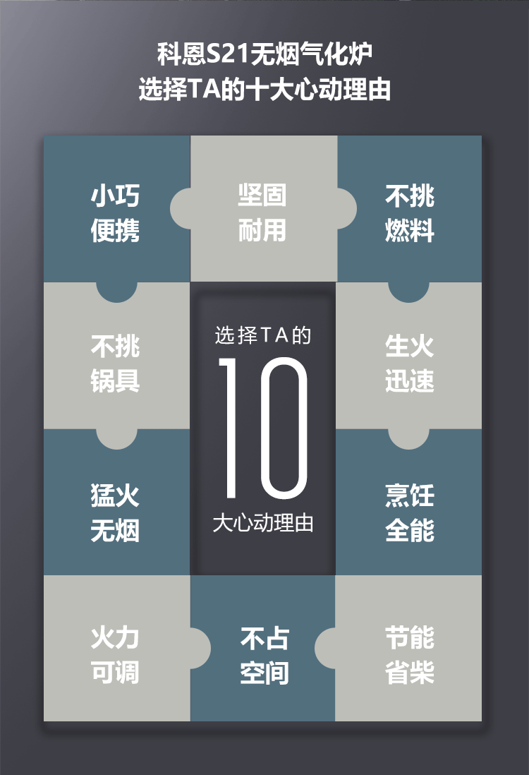 科恩無煙氣化爐S21,無煙環保,節能高效。以科技之名,守護山野呼吸的純凈留存人間煙火的溫度來一場說走就走的露營,享受春日暖陽和自然野趣。科恩,讓戶外烹飪更無憂,無煙氣化爐S21新升級,搭配12500RPM高轉速風機,無極調速,控火隨心。‌一切物體皆可燃‌,枯枝落葉化身燃料!