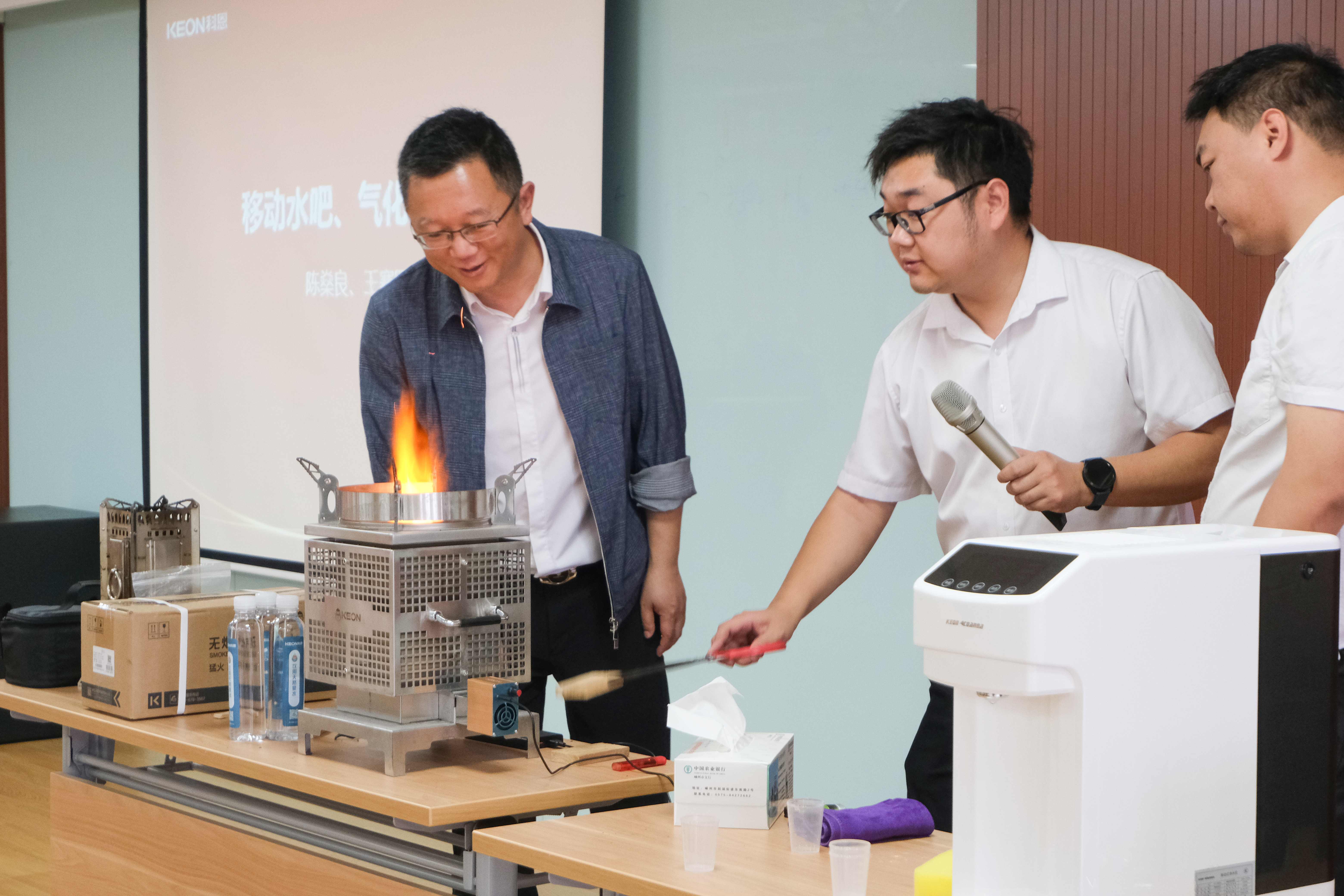 在現場進行了科恩無煙氣化爐,移動水吧等創新產品的操作演示,展現氣化爐小巧便捷、無煙猛火等硬核性能,實測移動水吧深度過濾等的功能,彰顯以創新重新定義廚電標準的研發理念