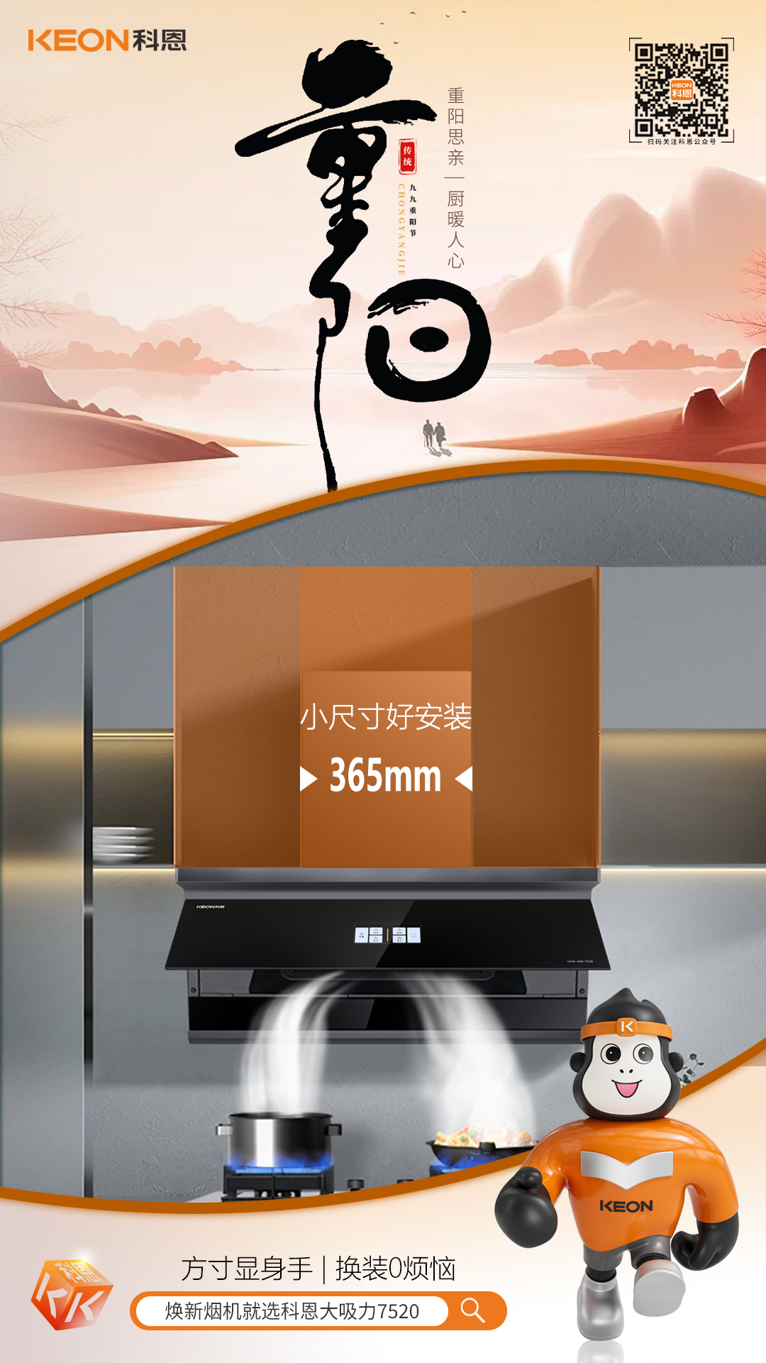 重陽又至,秋意漸濃登高祈福賞菊飲酒孝心綿長廚房煙火,承載三代溫情一套省心廚電讓團圓滋味更圓滿把對長輩的愛,藏進每一頓餐食里科恩廚電助你打造一個舒適、便捷、安全的廚房環境讓孝心在廚房中綻放