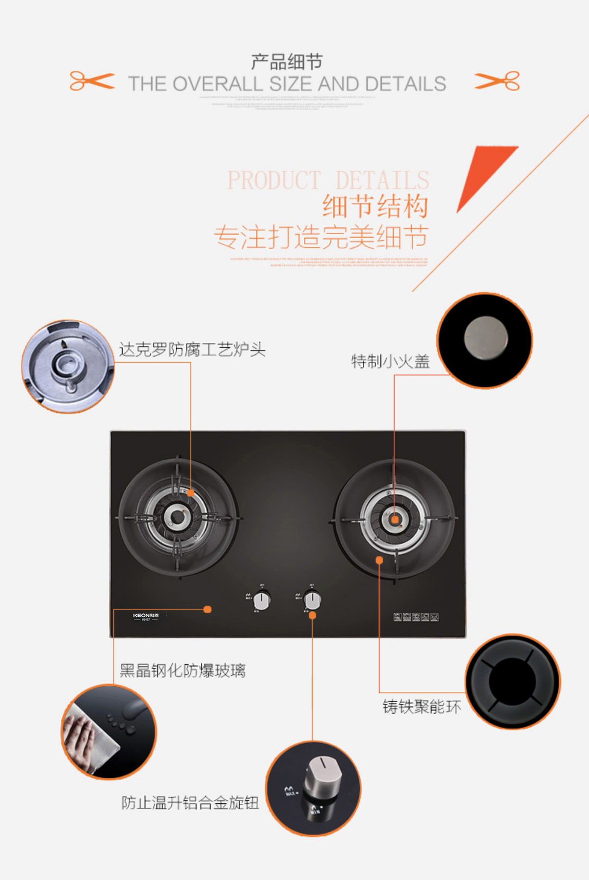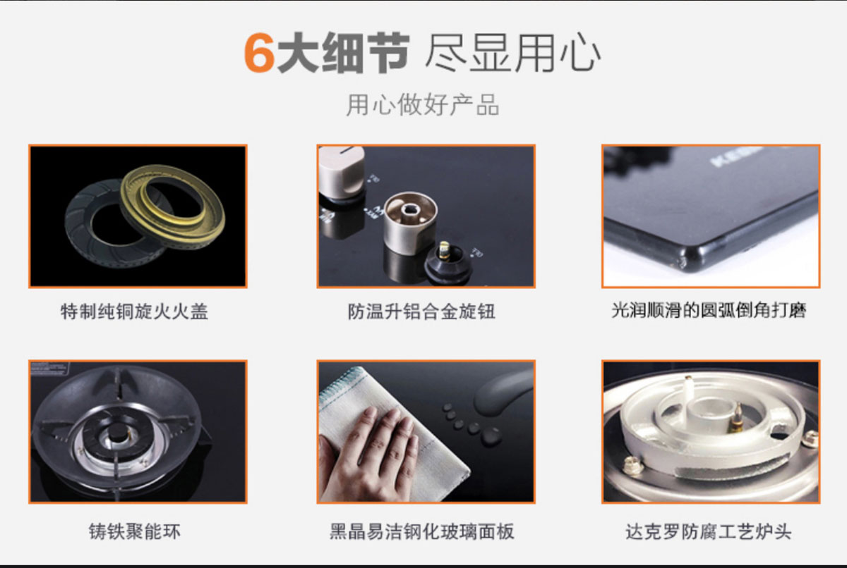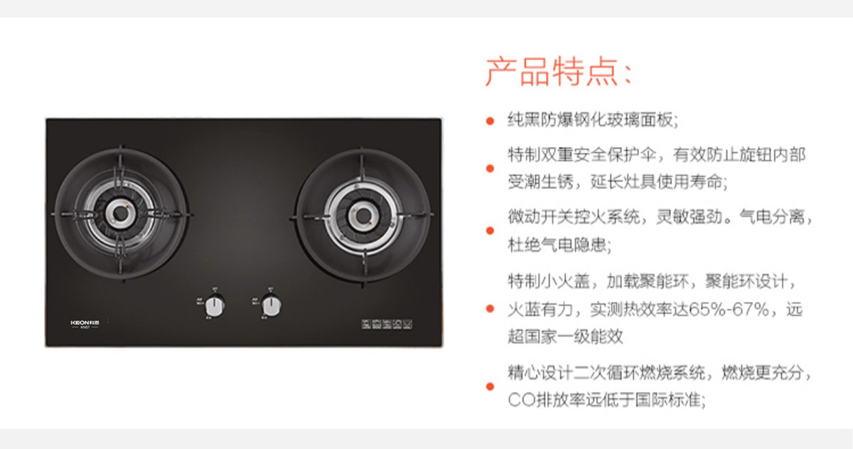 • 特制小火蓋,火藍有力,熱效率達65%-67%,高于一級能效標準。