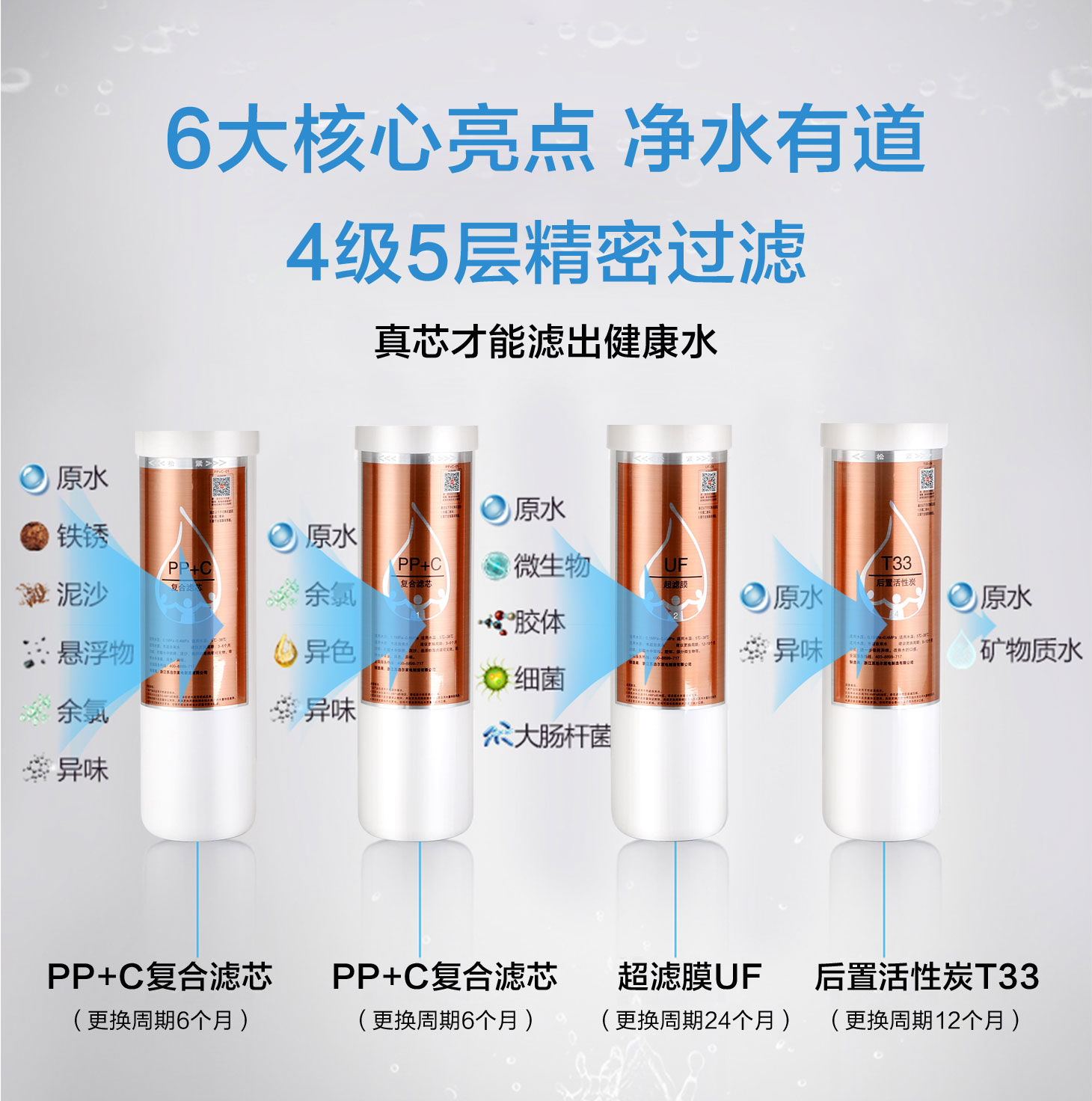 過(guò)濾級(jí)數(shù):(PP+C)+CTO+UF+T33