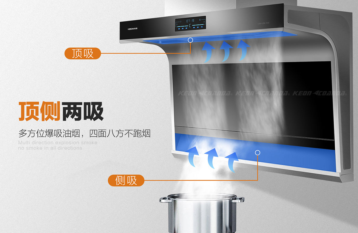 - 頂側兩吸,多方位爆吸油煙,四面八方不跑煙。