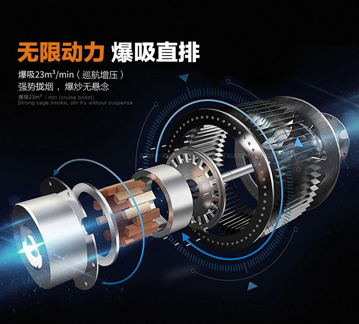強勁風量,超攏煙區,油煙不擴散。