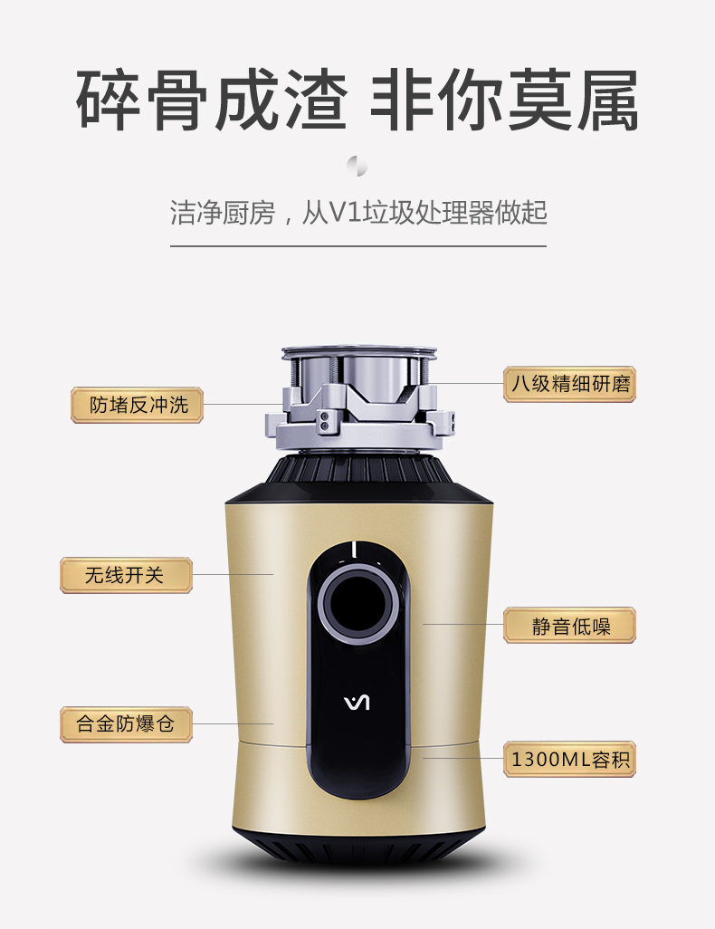 - 1300ML的大容量腔體,垃圾無處藏匿,順暢流走。