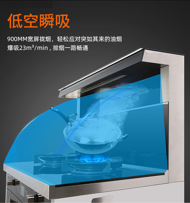 • 900MM寬屏攏煙,低空瞬吸,輕松搞定突如其來的油煙。
