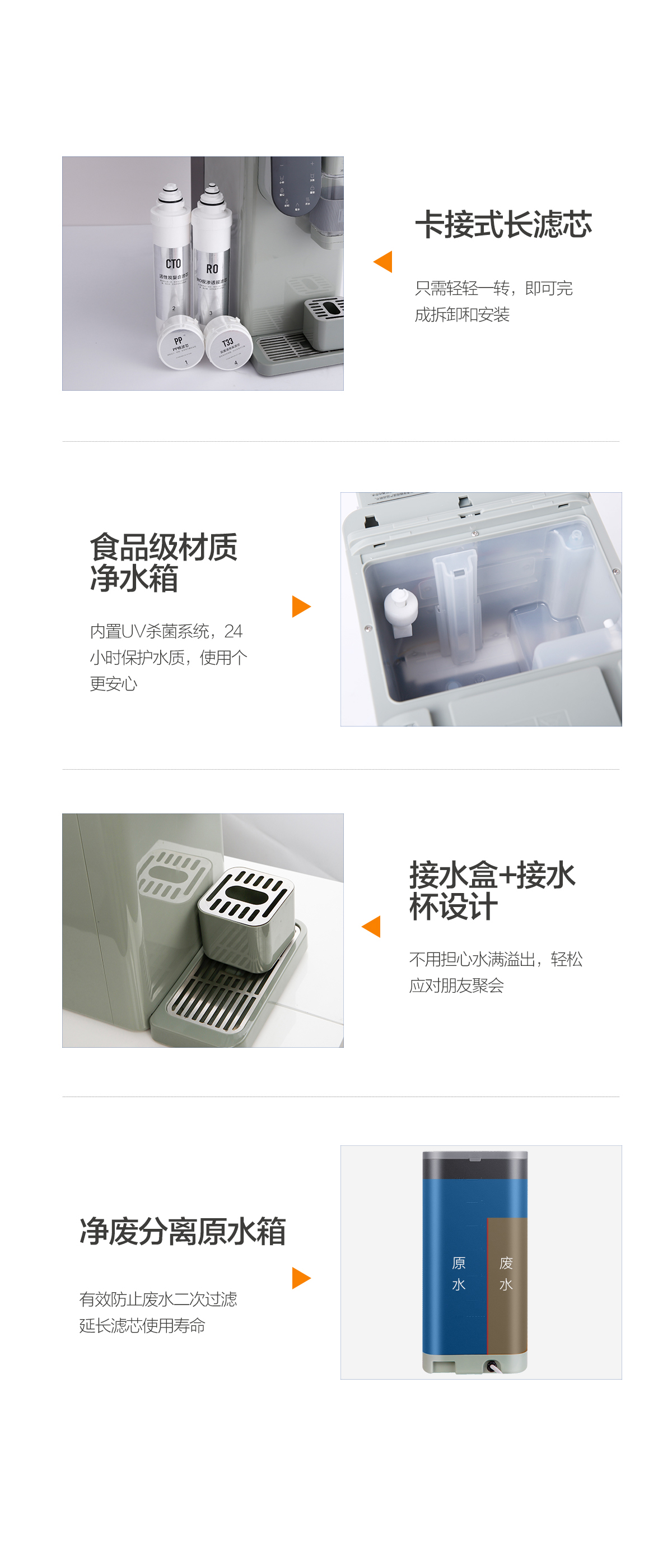 - 凈廢分離原水箱,有效減少濾芯使用損耗