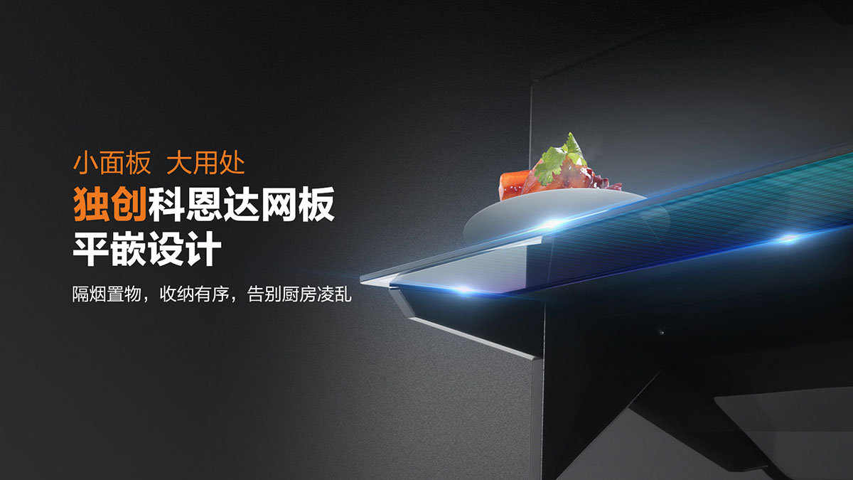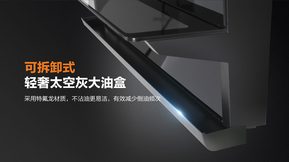 - 獨特黃金吸煙角,二次冷凝板內傾設計,油煙不過臉
