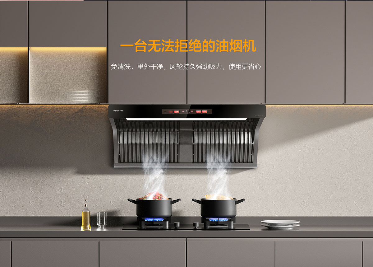 • 一鍵電熱智清洗,終身免拆洗,葉輪風柜壁自動除油,解放雙手