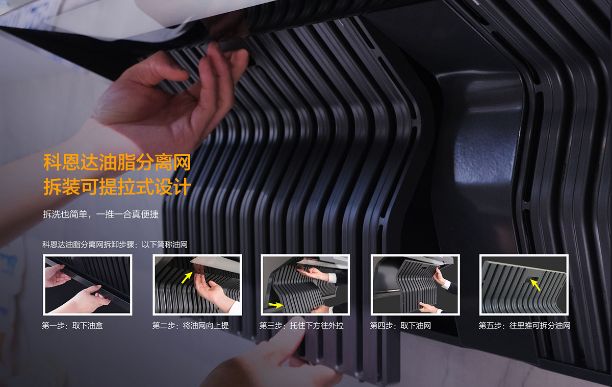 • 科恩達油脂分離網拆裝可提拉式設計,拆洗也簡單,一推一合真便捷