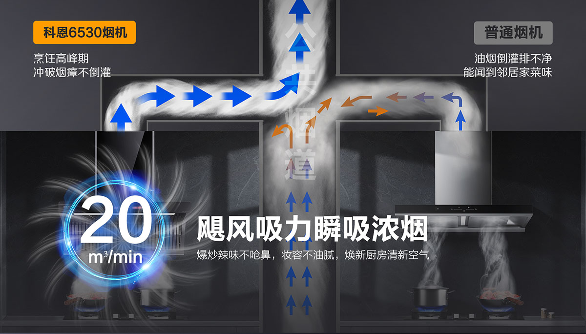 • 20m3/min颶風吸力,爆炒不嗆鼻,煥新廚房更潔凈