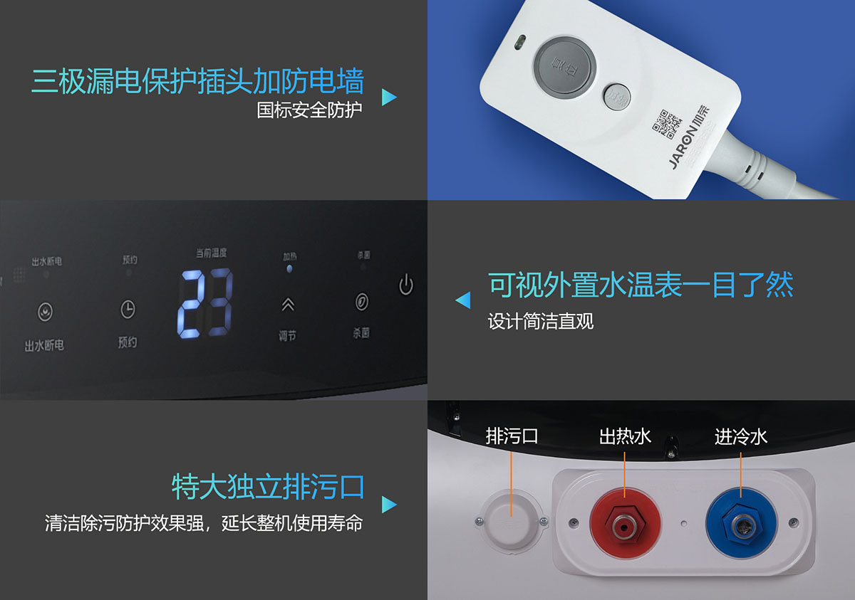 - 可視外置水溫表一目了然,設(shè)計(jì)簡潔直觀