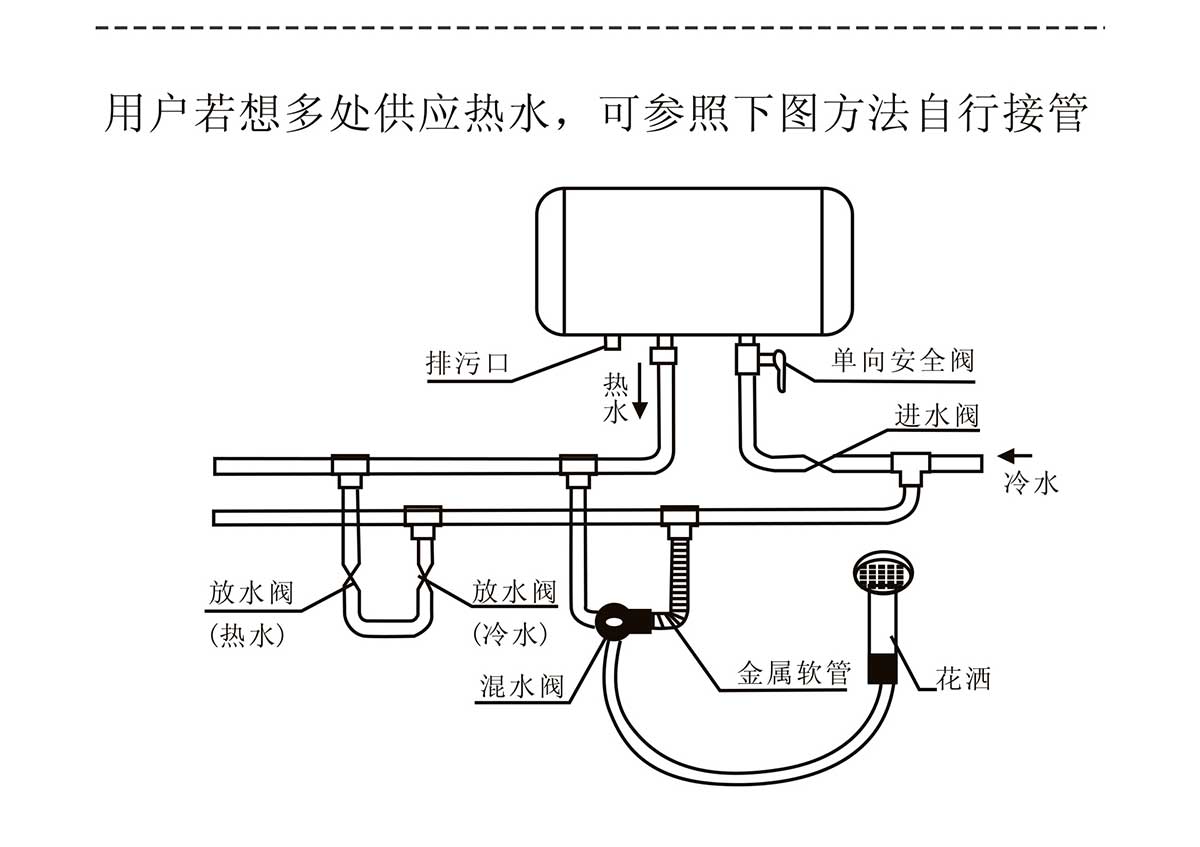 - 適應(yīng)水壓范圍廣,熱水容量大,可同時供給多個用水點(diǎn)用水