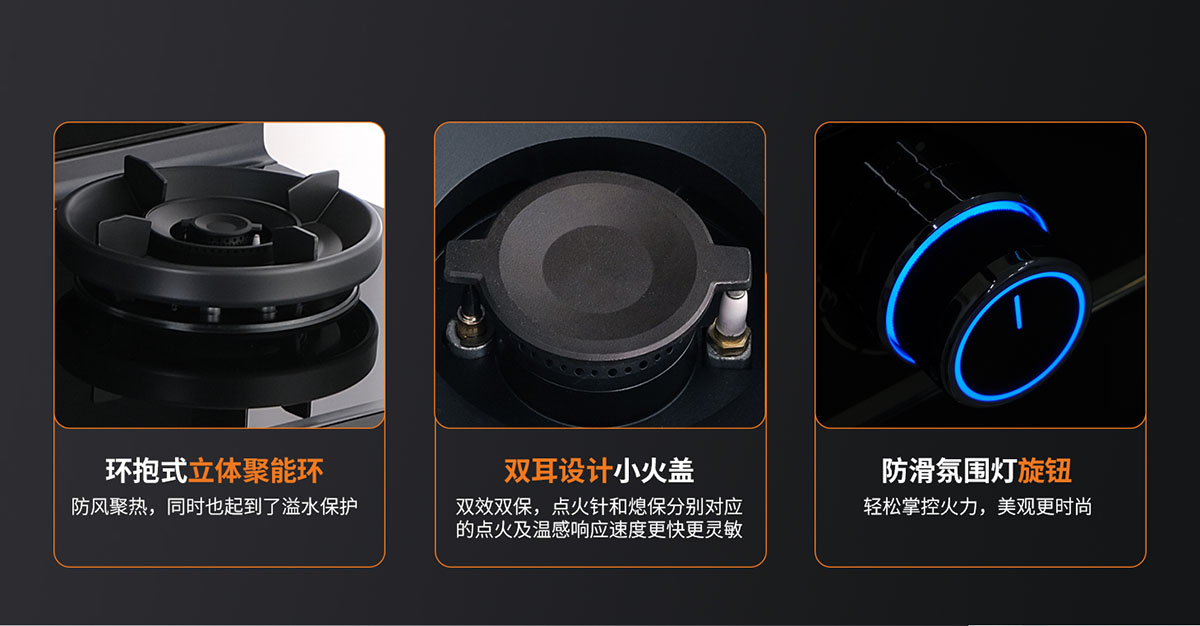 - 環(huán)抱式立體聚能環(huán),防風(fēng)聚熱,同時也起到了溢水保護(hù)