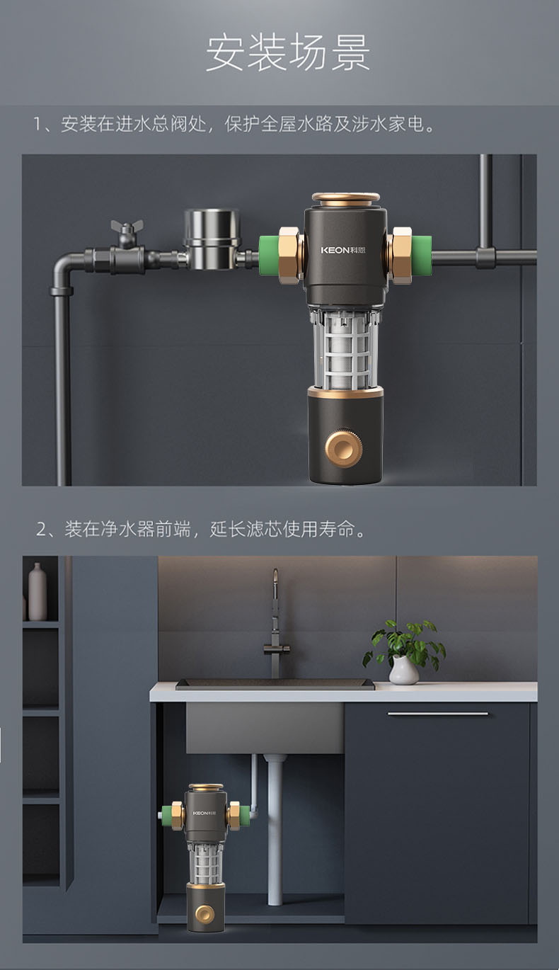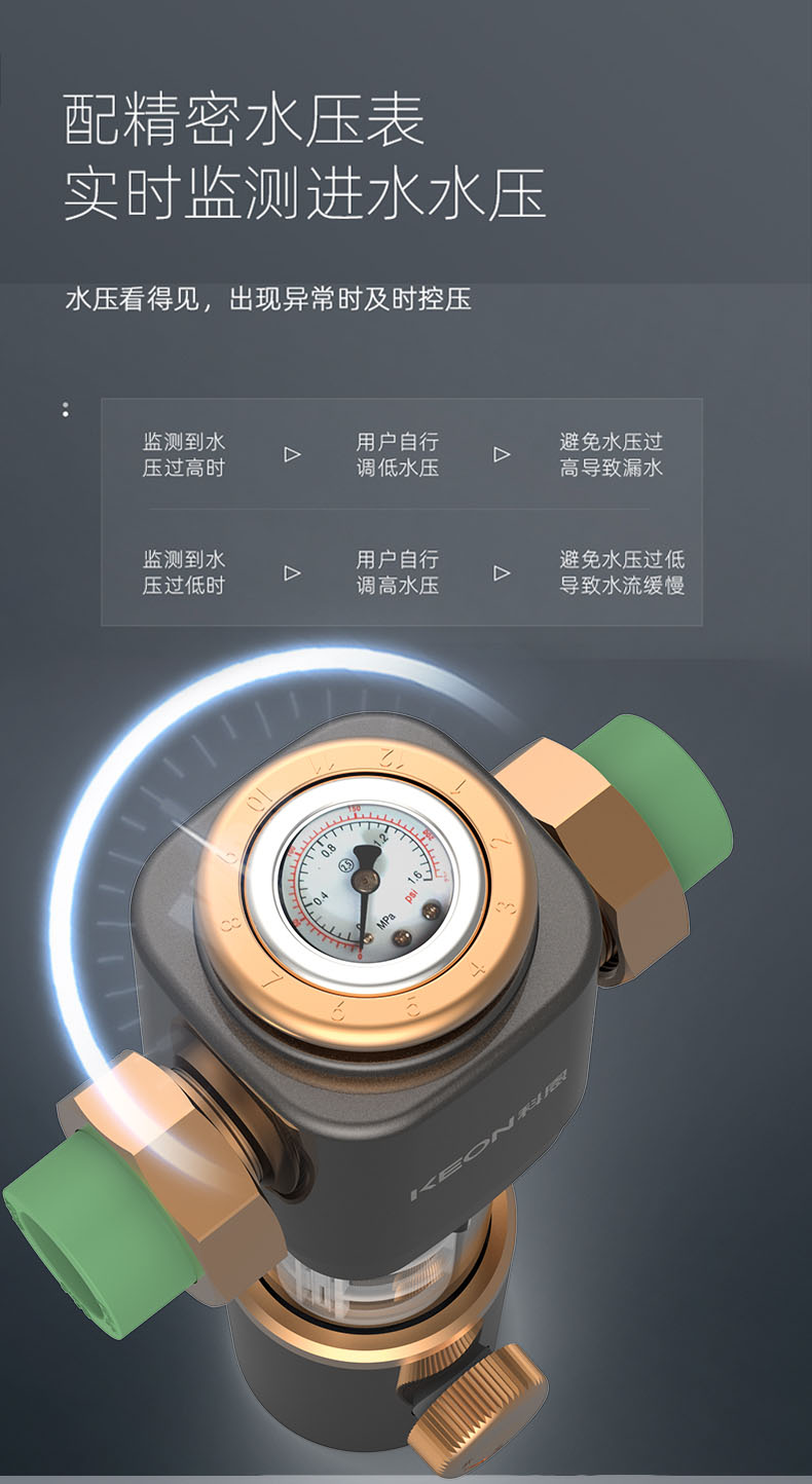 • 6噸/小時大流量,快速過濾,全屋用水無壓力
