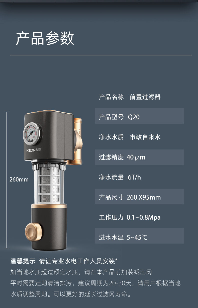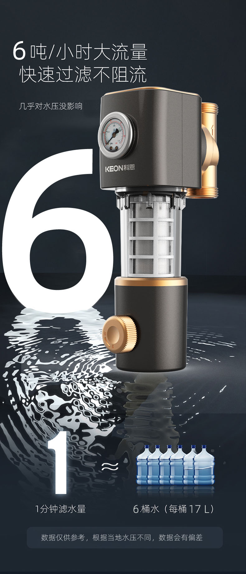 • 6噸/小時大流量,快速過濾,全屋用水無壓力