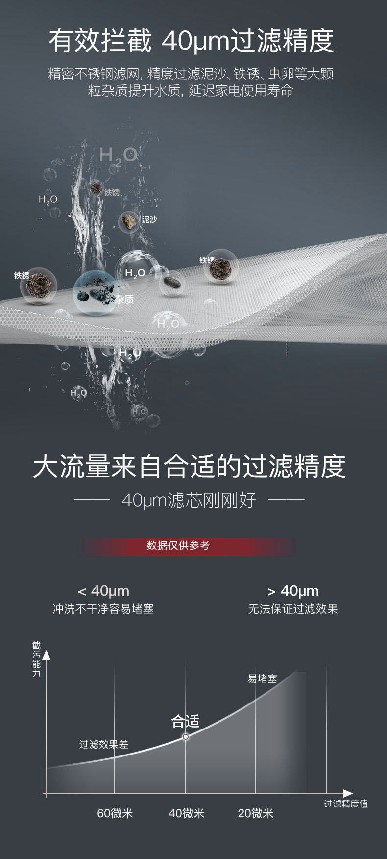 • 40μm過濾精度,精密不銹鋼濾網,提升水質