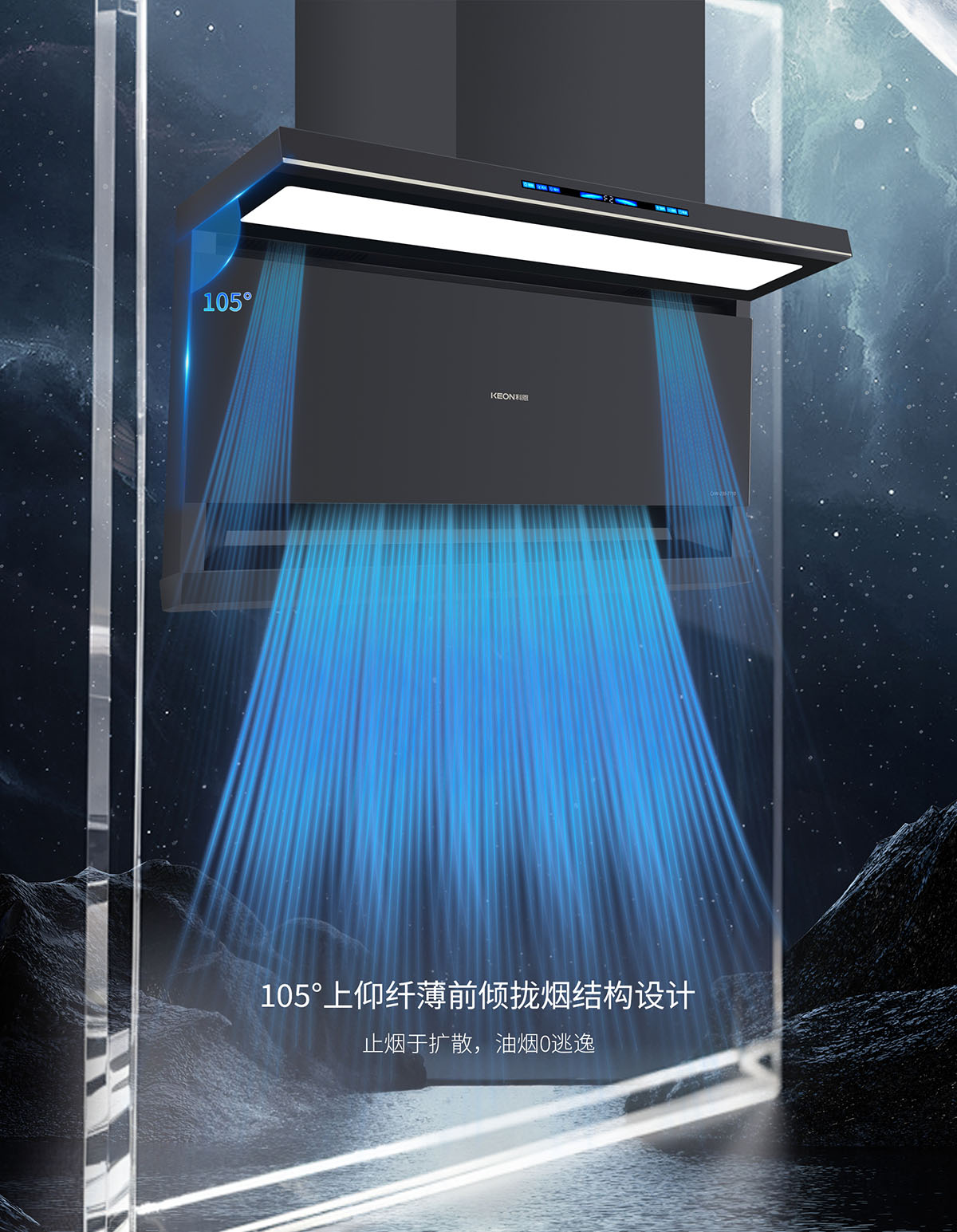 • 下吸上攏,頂側雙吸結構,油煙不逃逸