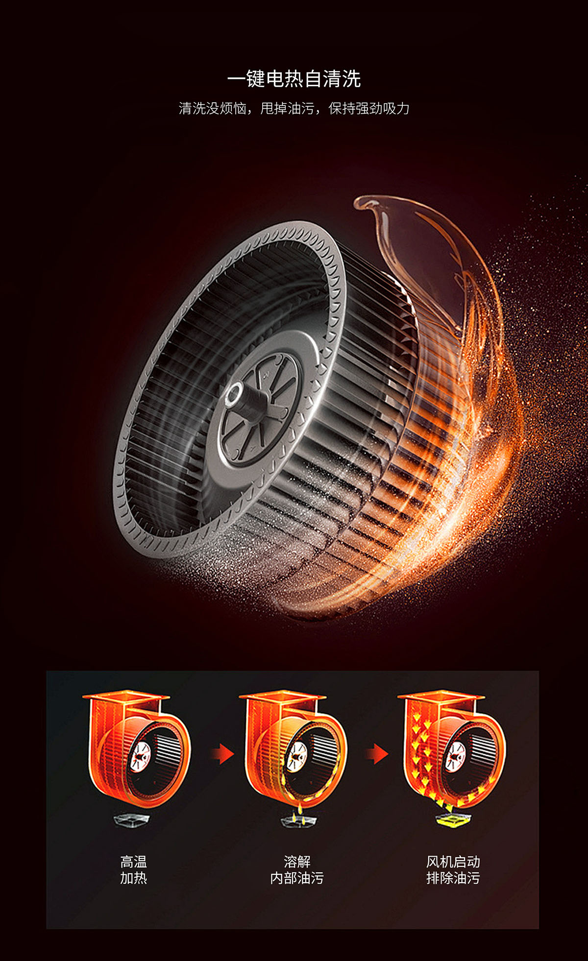 • 電熱自清洗,甩掉油污,保持強勁吸力