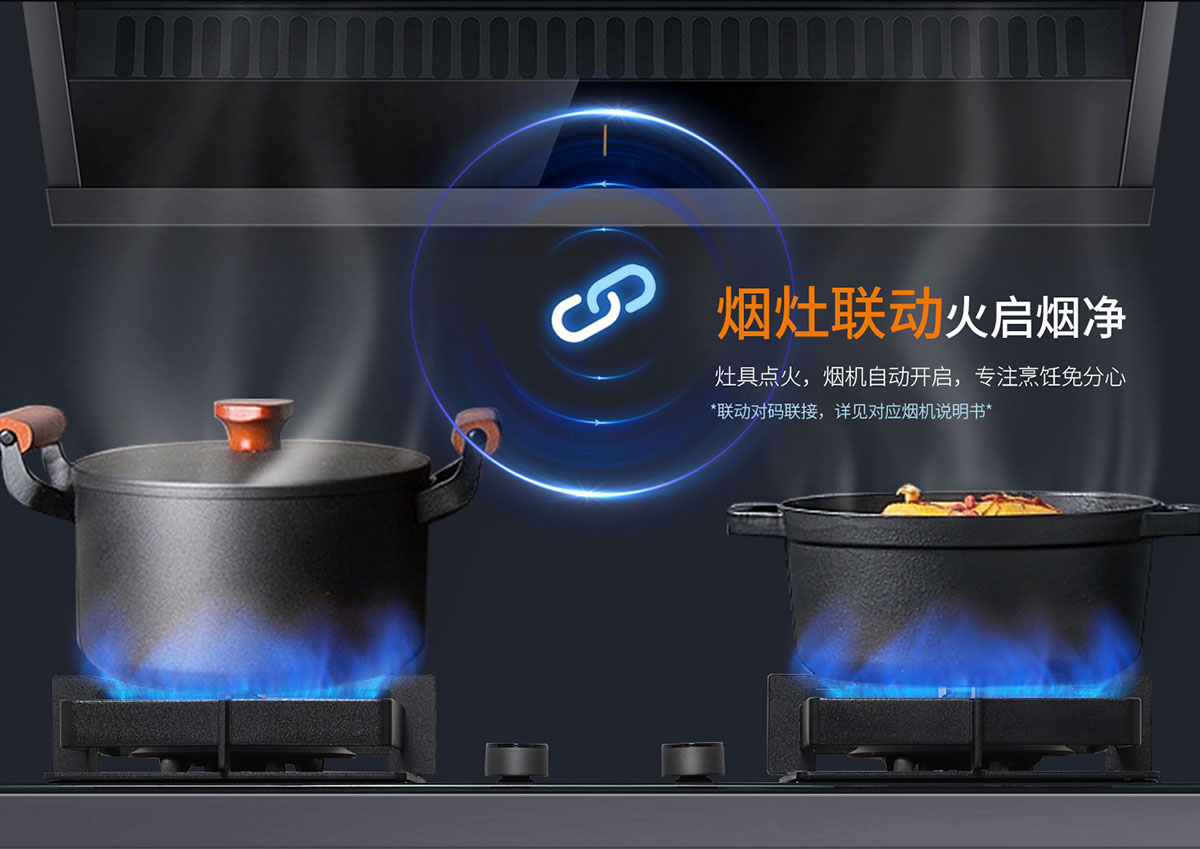 - 煙灶聯(lián)動(dòng),火啟煙凈,專注烹飪免分心