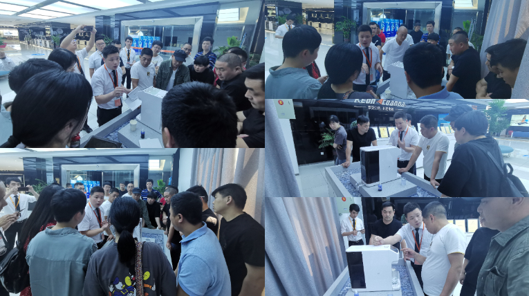 會議開始前,SVIP超級董事們在科恩精英團隊的帶領下,到科恩展廳進行現場觀摩科恩移動水吧的產品功能特點展示體驗;科恩移動水吧“以一抵六”的創新模式,免安裝技術,超大液晶顯示屏,常溫、奶粉、泡咖啡、泡茶四檔溫控的暖心設計,高達0.0001微米的RO反滲透技術,七級精濾系統層層把關水質的功能特點,科恩移動水吧的所有榮譽展示,皆讓參會人員進一步加深了科恩移動水吧的認知,極大地增強了經營科恩移動水吧的信心,為順利擴大后續移動水吧市場銷售提供了有利的保障!