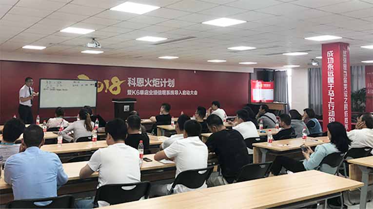 接下來的育商強商培訓會上,科恩電器商學院王校長,從導購實戰、渠道拓展、促銷活動、門店布置等多個方面出發,通過理論與實踐相結合的方式一一向在座的經銷商家人們分享了店鋪經營管理之道。隨后的討論環節,大家相互探討市場操作方案,通過交流,把存在的問題進行剖析,最大化地解決可能遇到的問題。另外,針對經銷商普遍感到困惑的渠道開發、拓展等問題,王校長也結合精彩的活動案例現場點評分析,經銷商熱情高漲,積極參與互動,掀起了又一個高潮。