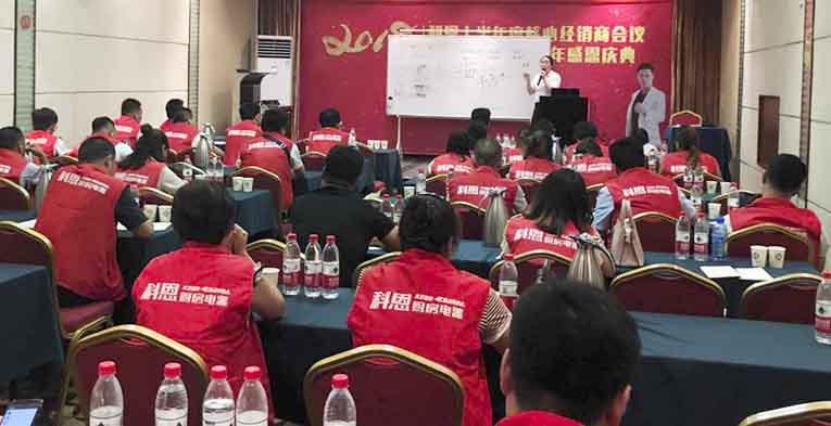 “產品只是工具,渠道才是維持企業(yè)生存和發(fā)展壯大的王牌,在競爭多元化的市場上,我們所面臨的對手不僅是業(yè)內同行,還有跨行企業(yè)”??贫麟娖鳡I銷總監(jiān)趙漢斌表示,2018年以來,全品類廚電專業(yè)質造企業(yè)科恩電器緊跟市場步伐,開啟全新營銷模式“火炬計劃”K6單店業(yè)績倍增系統(tǒng)培訓,育商強商,助力終端?!盎鹁嬗媱潯庇煽贫骺偛坎俦P,科恩商學院主辦開設最貼近市場營銷的實戰(zhàn)攻略課程,采取“引進來”號召全國經銷商到訪總部培訓K6專業(yè)系統(tǒng)課程,“走出去”科恩商學院育商精英團隊親臨終端門店,落地幫扶,真正實現(xiàn)知行合一,實際操作產生銷量倍增的方式聯(lián)合打造強企強商命運共同體。